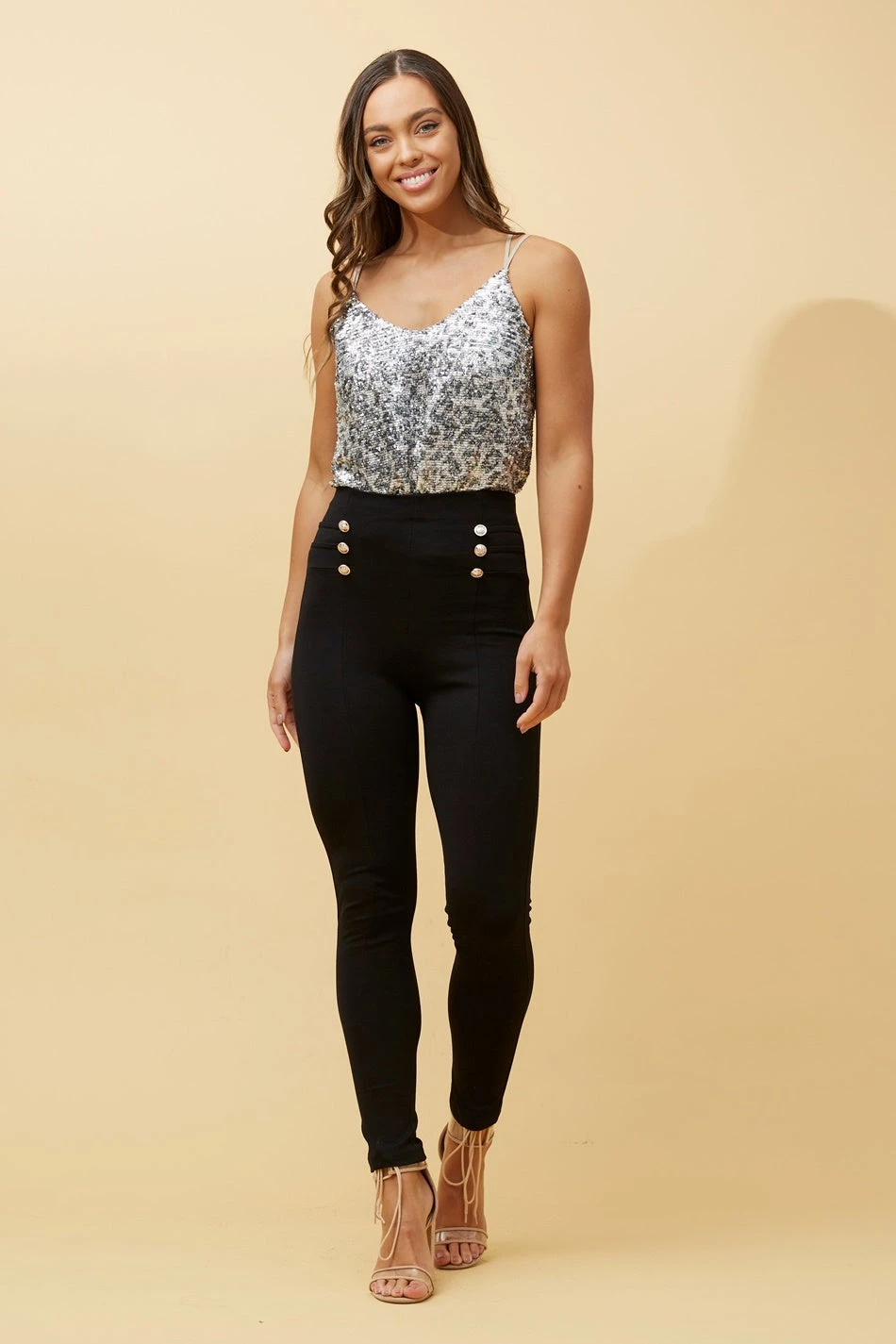 With a high waist line and stunning front button detail, you can wear these pants to any occasion! Pair these with boots and blazer or heels and an evening top to suit your mood!