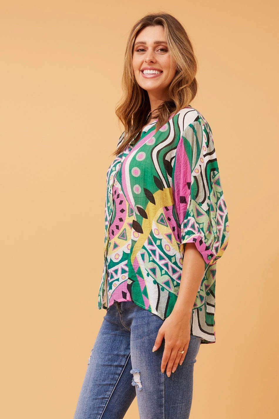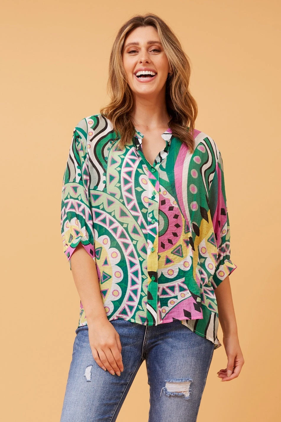 Featuring a classic design with a modern twist, this shirt boasts chic 3/4 sleeves for a sophisticated look. Whether you’re dressing up for a professional setting or adding a polished touch to your casual wear, this shirt seamlessly combines comfort and style.
