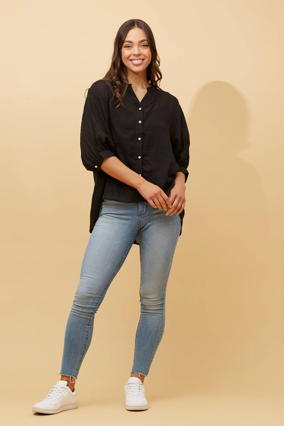 - 3/4 balloon sleeves with cuffs