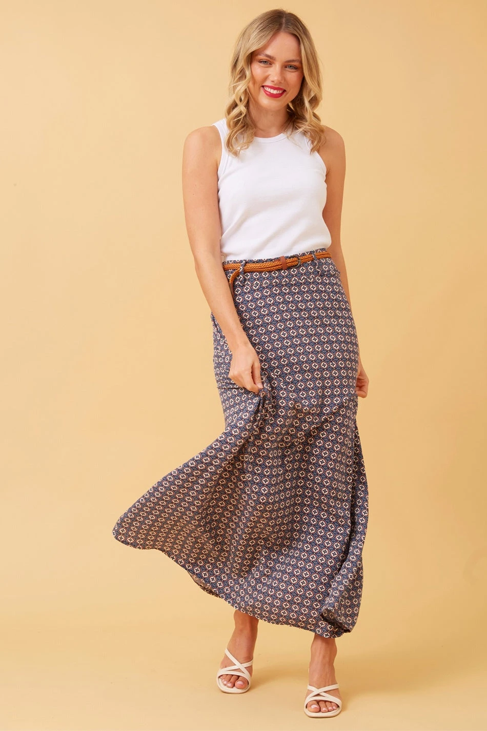 This light weight long skirt is perfect for any weekend occasion. Team with white t-shirt and flats for a casual yet elegant look.