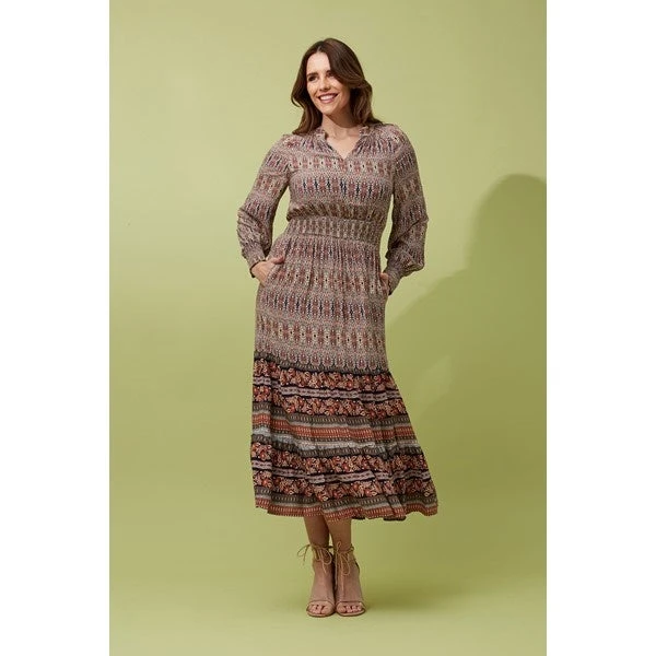 Add this easy to wear maxi dress to your wardrobe for effortless styling. Fabricated in a simple comfortable fabric and designed with a V-neckline and an elastic waistband to define your shape. Wear with simple heels for an effortless chic style.