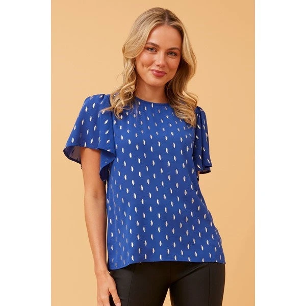Shine like a star in our ditsy foil print top! Crafted in an all over foil print design, this flattering party top is detailed with on-trend flounce sleeves. Add a clutch bag and high heels to be ready to party in seconds!