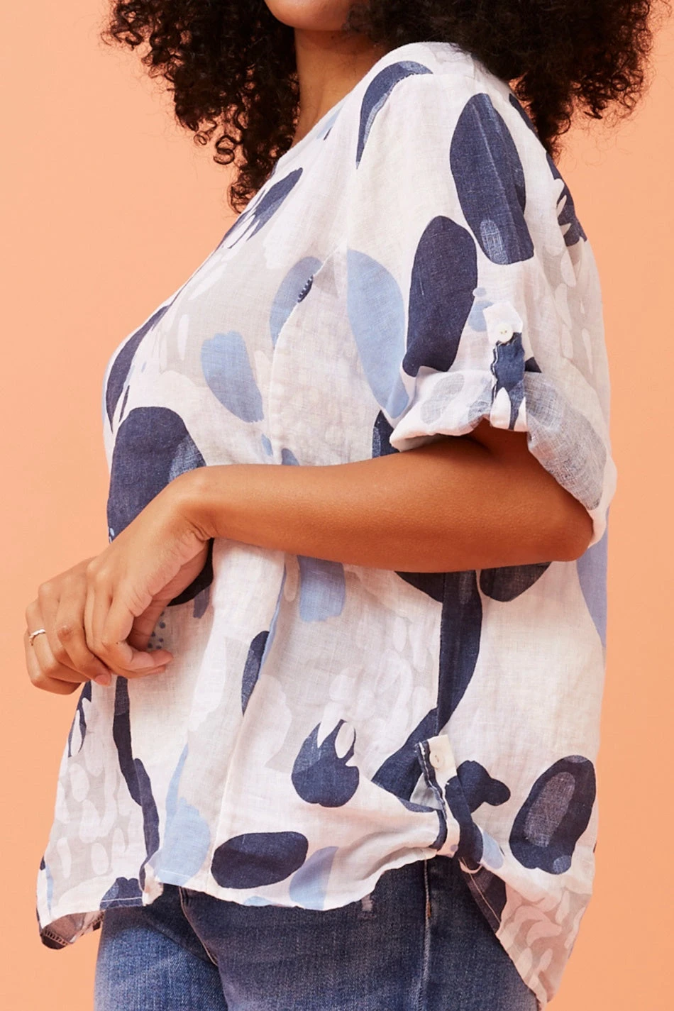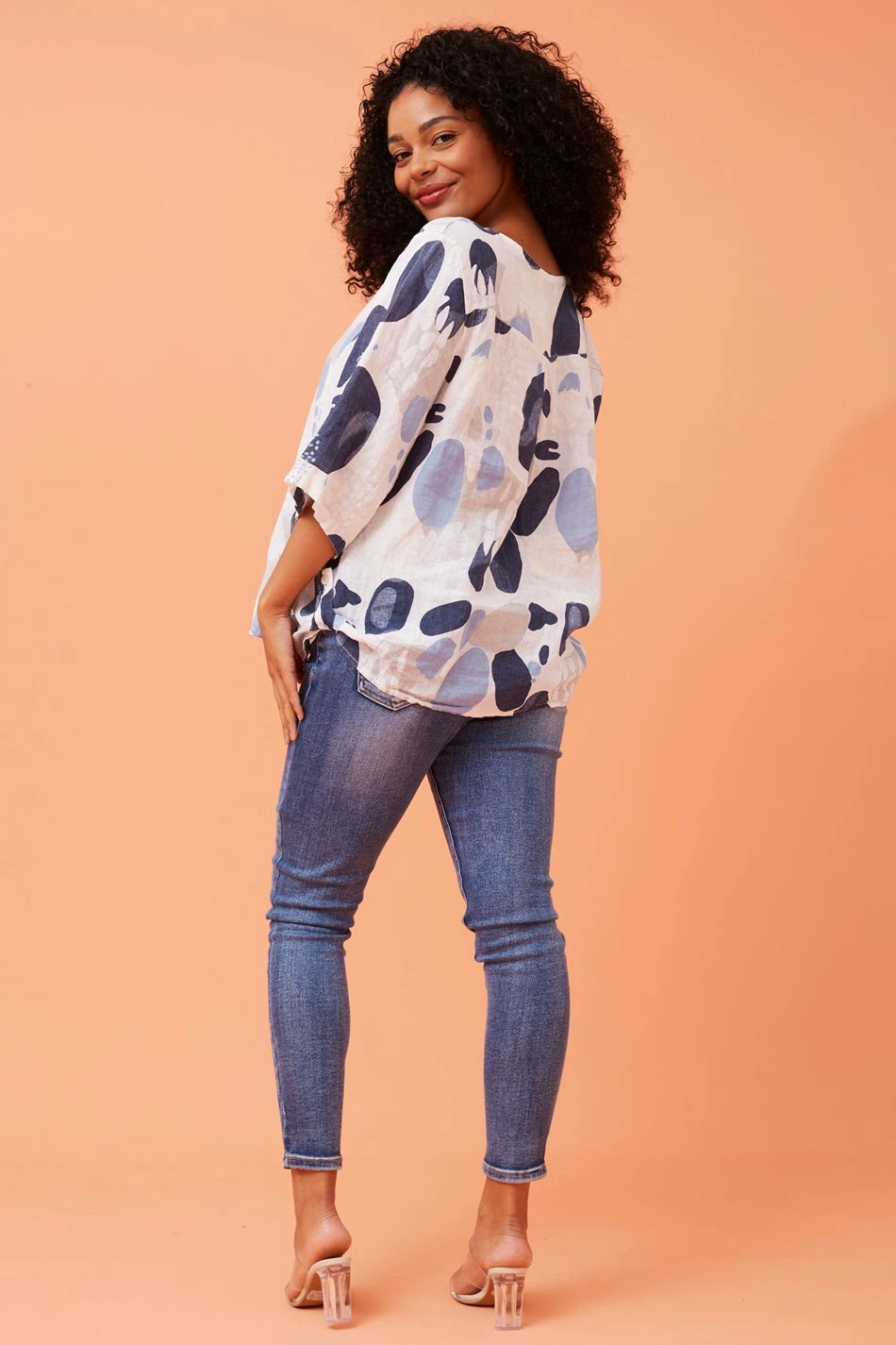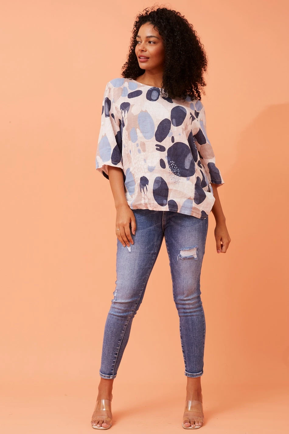 Feel absolutely beautiful in this abstract print top this season! Style with everyday jeans or shorts for a stylish effortless look!