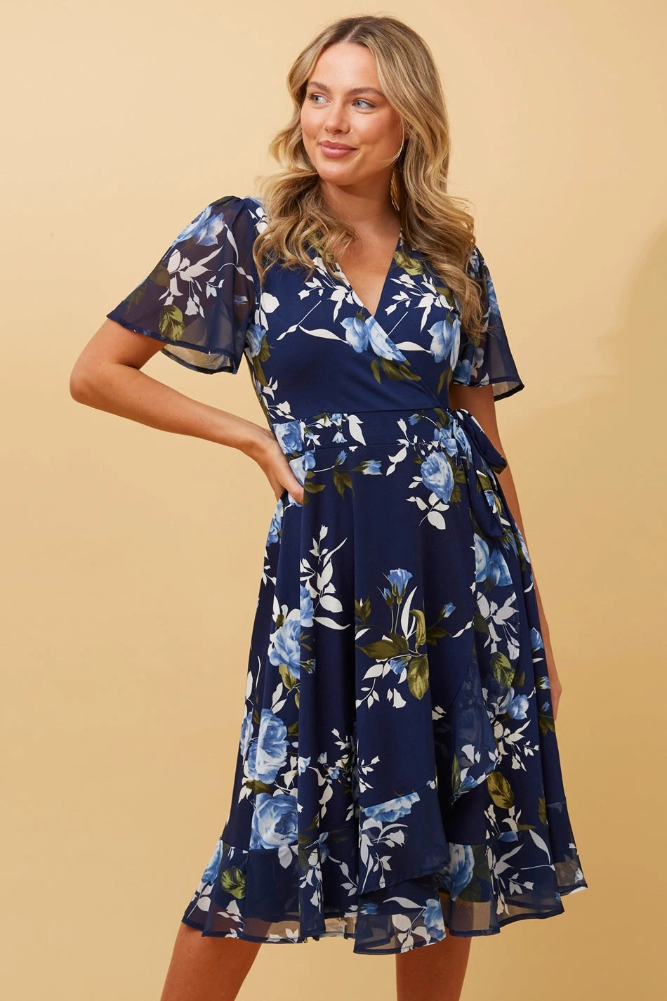 Get on the frill trend with wrap fit and flare dress. Features a nipped in waistline offset by an A-line skirt for a flattering fit and a delicate frill detail that wraps across the front neckline and hem. Team this feminine dress with strappy heels for a smart daytime look.