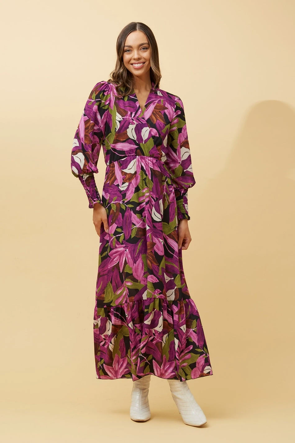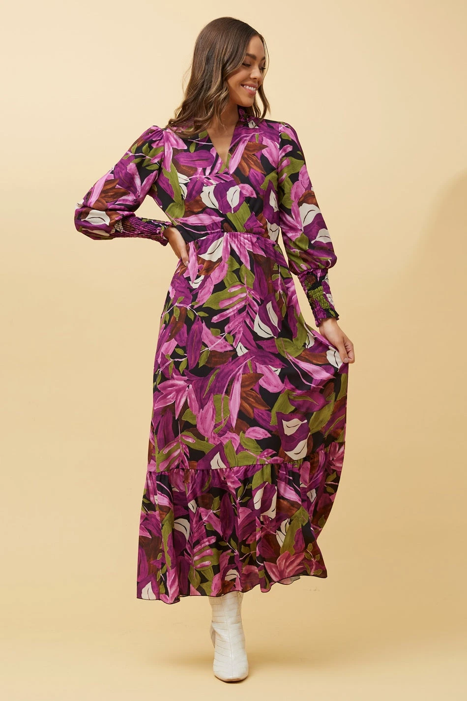 The perfect blend of dressy and casual, this gorgeous botanical print maxi dress is perfect for all informal occasions and outings! With feminine balloon sleeves and mock crossover bodice, this Made in Italy dress will be your new go-to for all meets and greets! Match this with your favourite heels or boots and minimal earrings to complete that look!