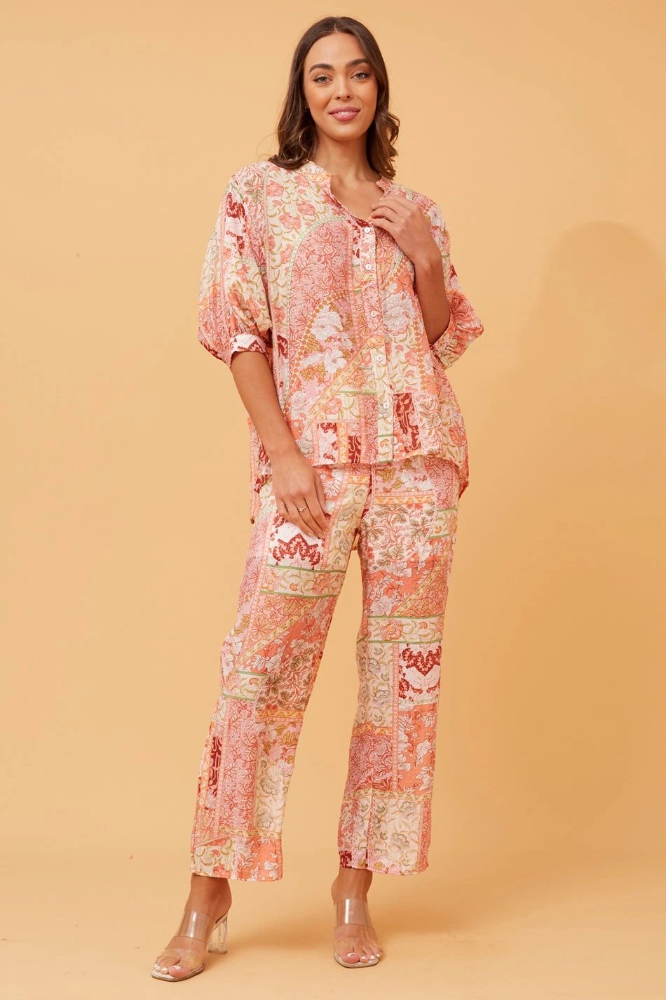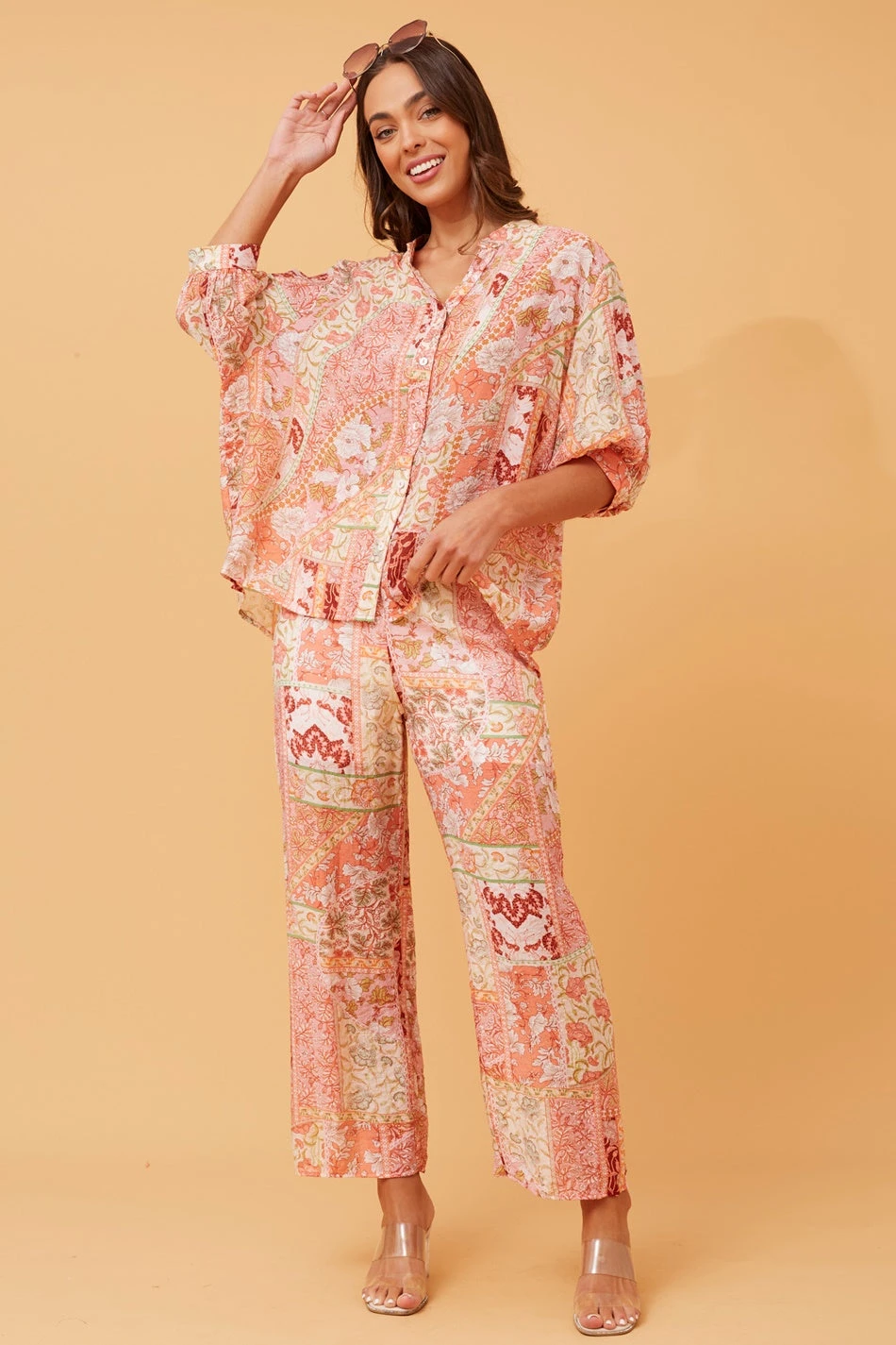 Introducing the Emilia Print Set — your perfect vacation companion. This set combines comfort with style, featuring a captivating print. The wide-leg pants provide a modern and relaxed silhouette, ensuring both ease of movement and on-trend fashion. Whether you’re strolling on the beach or exploring new destinations, embrace the ease and flair of the Noelani set, designed for your unforgettable vacation moments.