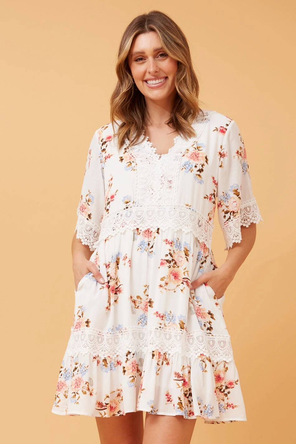Feminine and playful, this floral lace dress is perfect for picnic, brunch or your next vacation! Style it with your favourite sandals or sneakers for an effortless chic look!