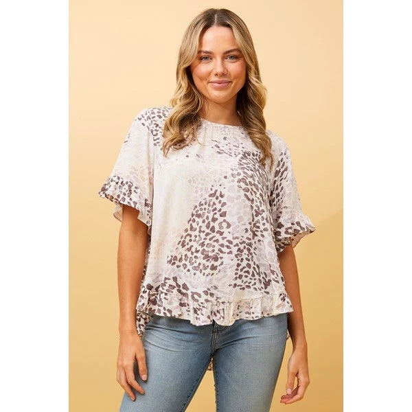 Add a stylish twist to your basic top with this frill detail top. Style with skinny jeans or shorts for a cook and effortless look!