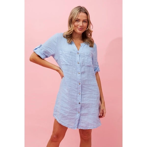 Made to be a roomy fit for pure comfort, featuring front button and roll up sleeves giving you the ability to wear them rolled up or clasped down. Wear it open as a casual shirt dress, pair it up with some simple heels or even layer it over a knit dress. This dress sure gives you a lot of options!