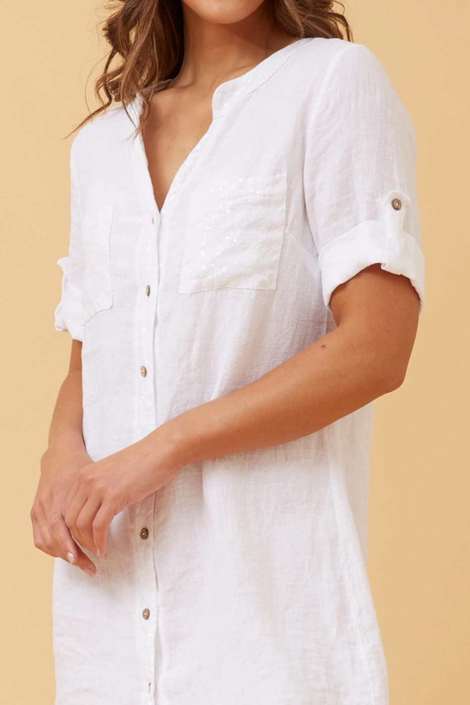 - Short roll up sleeves with button detail