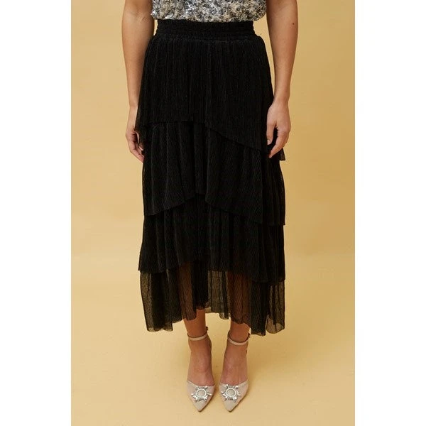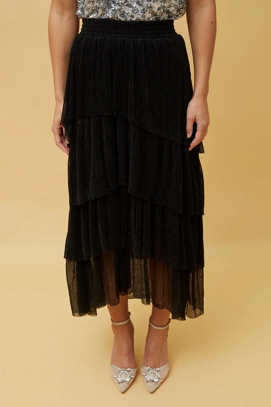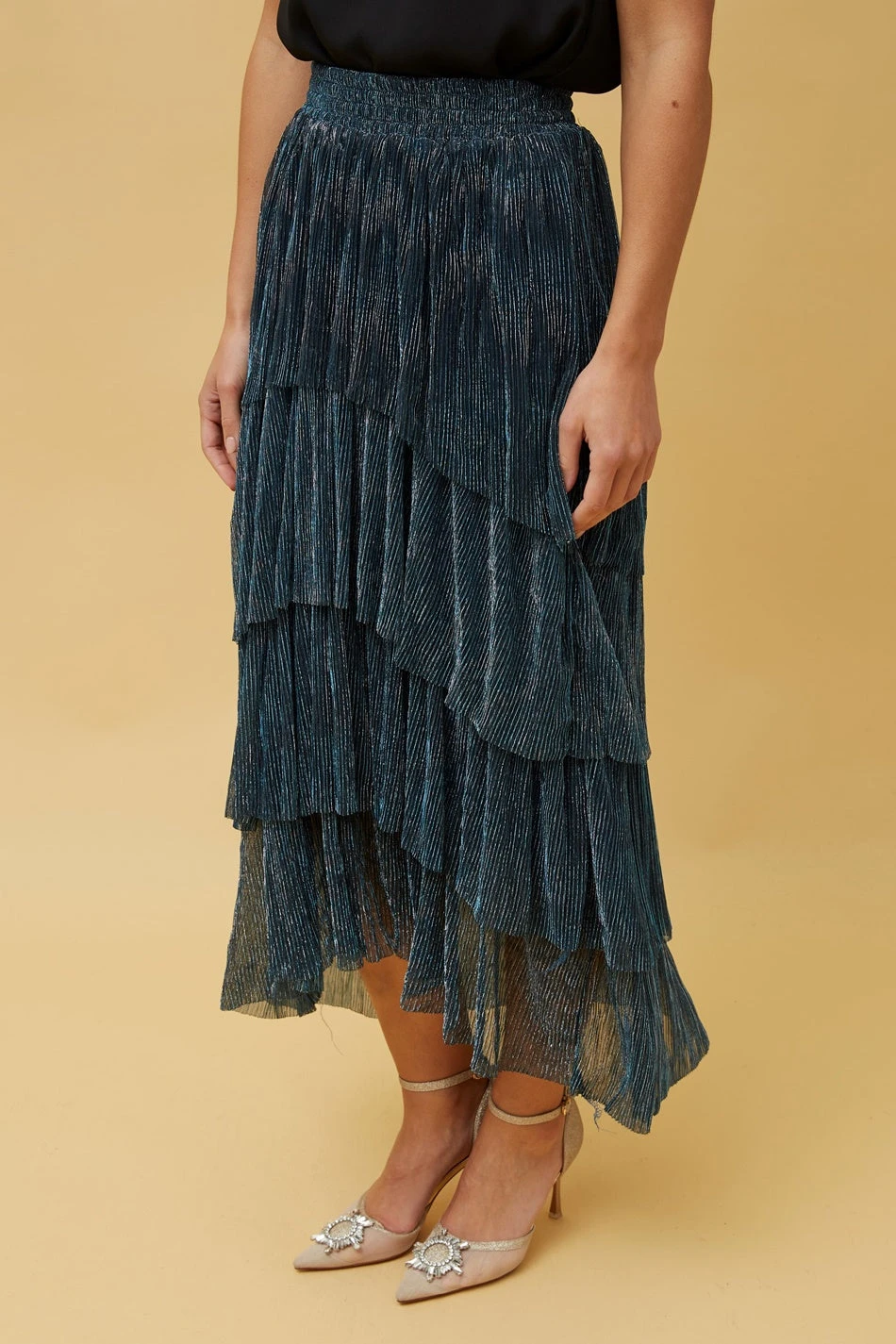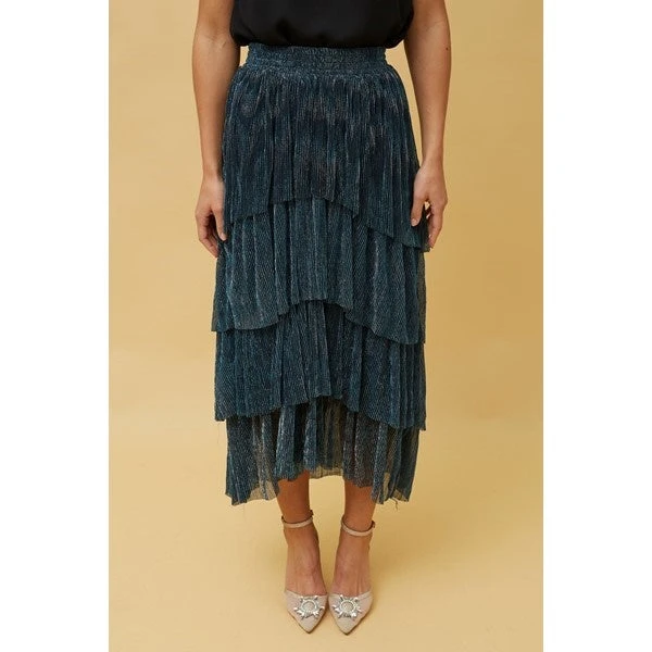 Our pleat skirts will make you feel like twirling! An elegant, classic fully pleated design with a flattering lurex finish and elasticated waistband for maximum comfort. Wear with a tee and cardi or a cropped knit and coat.