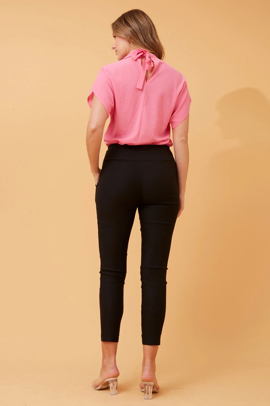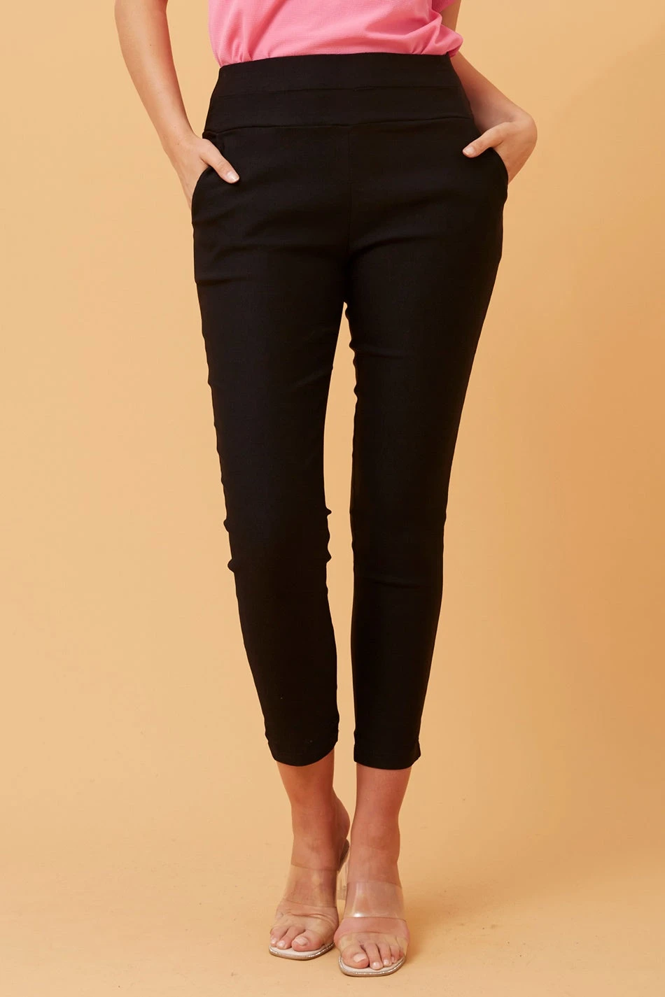 Made from a comfortable bi-stretch fabric with a textured twill finish, this easy pull-on style is perfect for layering. All about comfort and fit, this slim pant has an elasticized waist and minimal detail.