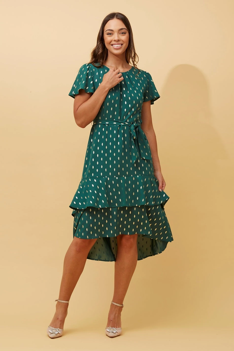 Perfect for a cocktail party or an evening event. A classic fit-and-flare silhouette softly accentuates the figure, while tiered ruffle on the skirt lends a bold feminine charm. Perfect for the upcoming season.