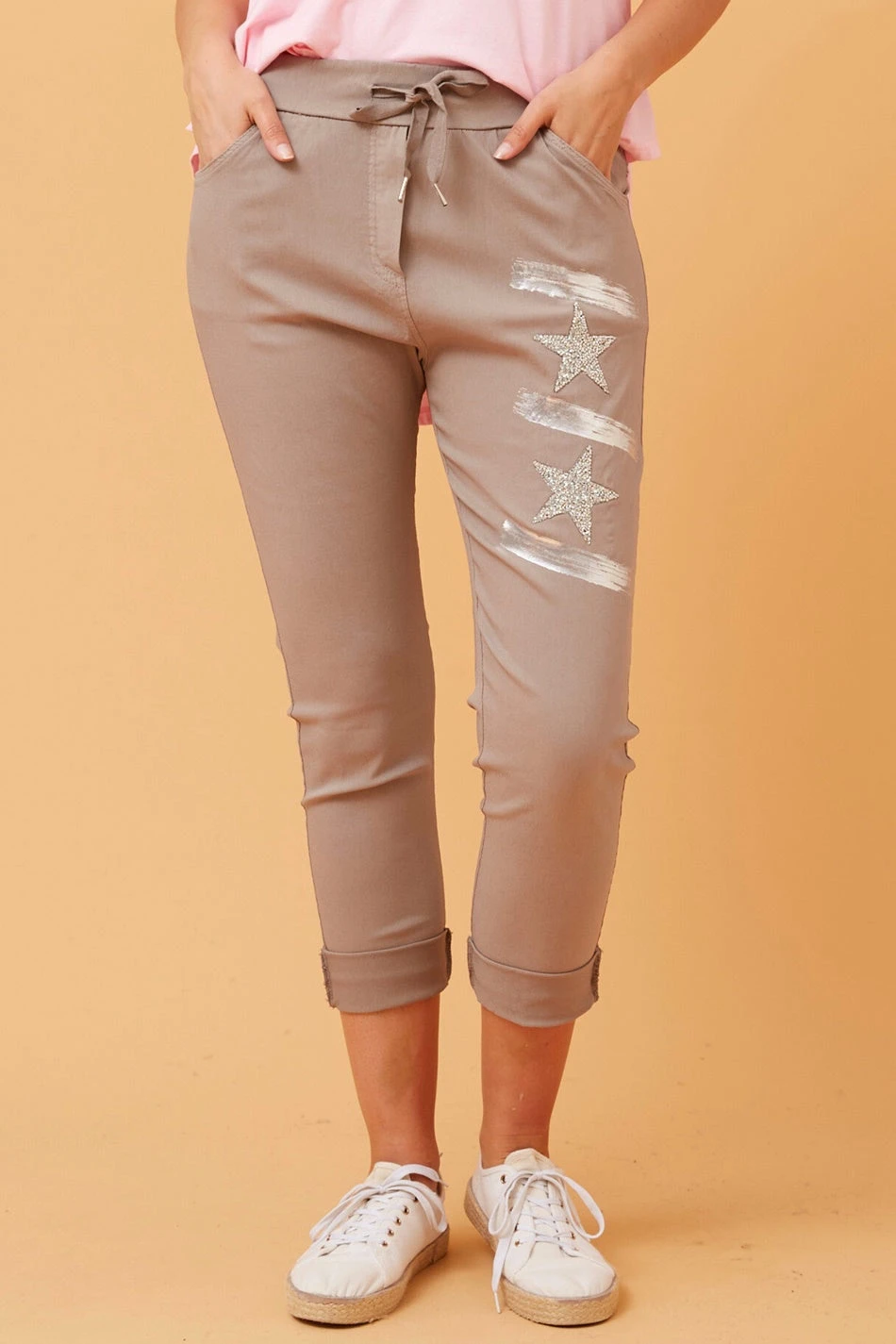 These sequin star print joggers are the kind of pants you will be living in all year round. Blending the casual-chic style of jeans with the easy comfort of joggers. Perfect for pairing with sneakers and a simple tee for that casual yet chic look.