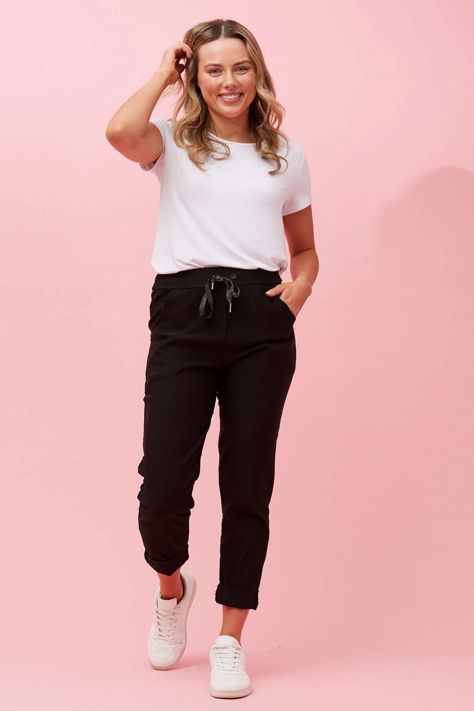 These solid joggers are the kind of pants you will be living in all year round. Blending the casual-chic style of jeans with the easy comfort of joggers. Perfect for pairing with sneakers and a simple tee for that casual yet chic look.