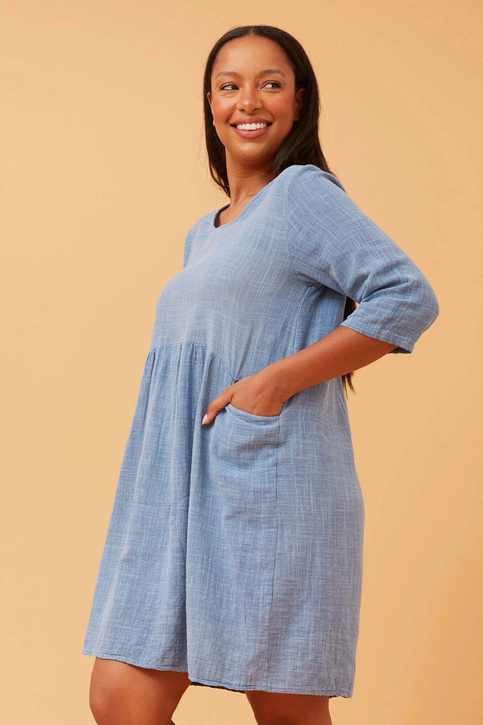 Our Made in Italy minimalistic dress comes with 3/4th sleeves, twin side pockets and an regular fit! With a light-weight airy fabric, this dress is a perfect summer staple! Match this with your favourite sandals to complete an effortless summer sophistication look!