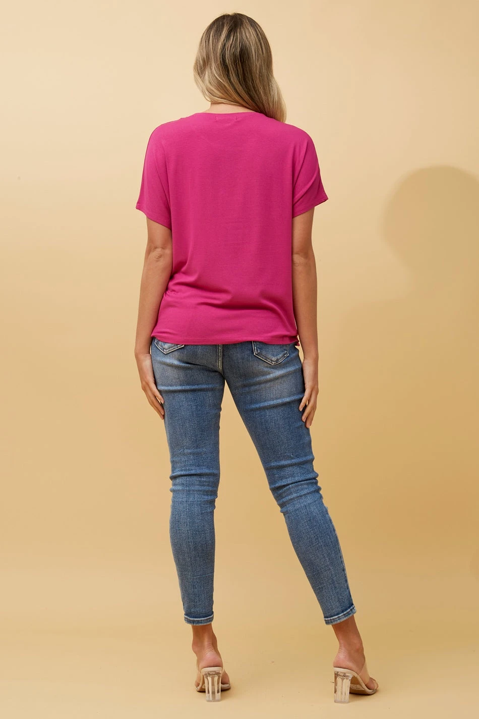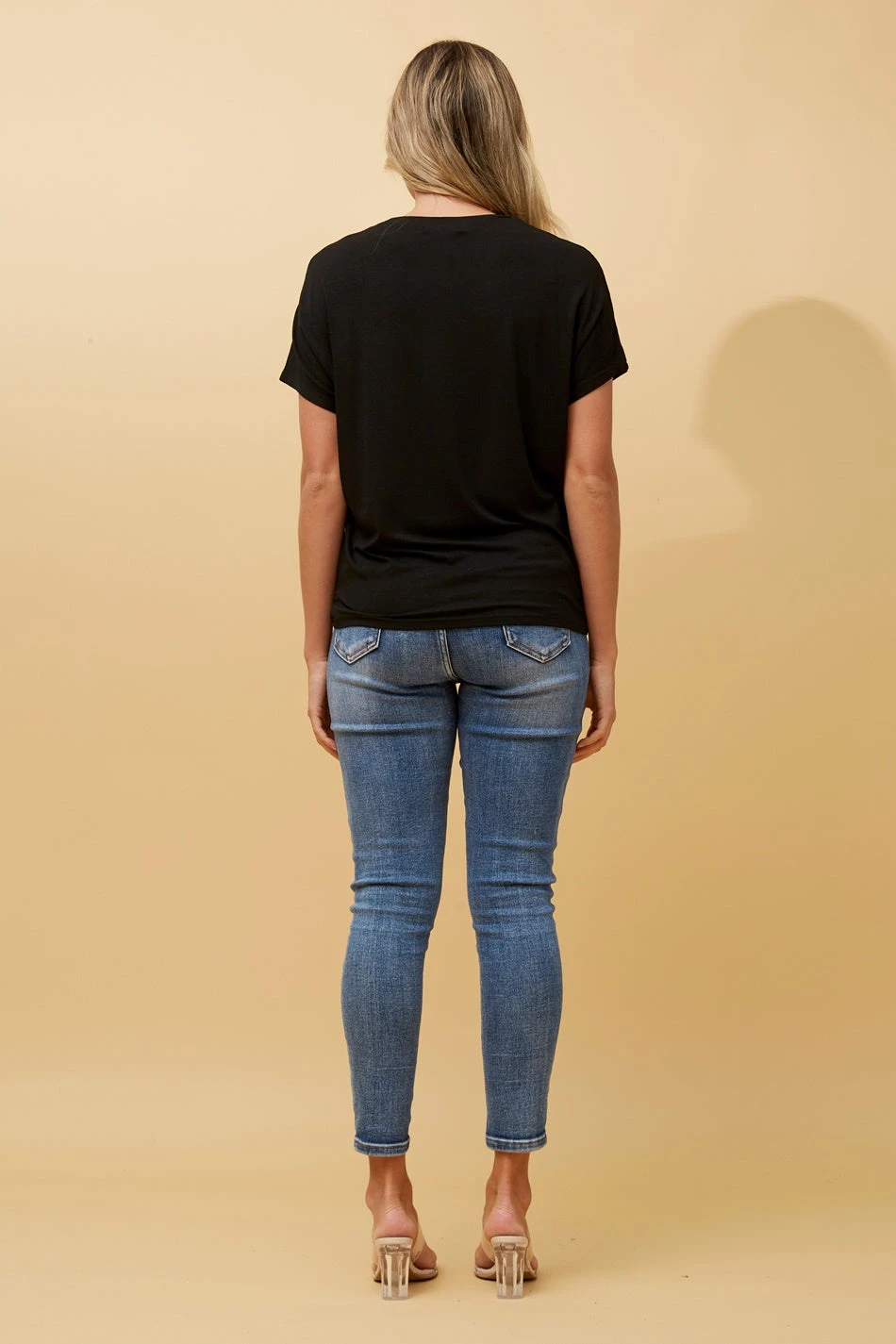 Not so basic basics! Keep cool and comfortable this season in our solid Jillie tshirt. Style with jeans, shorts or skirts for a relaxed and effortless look!
