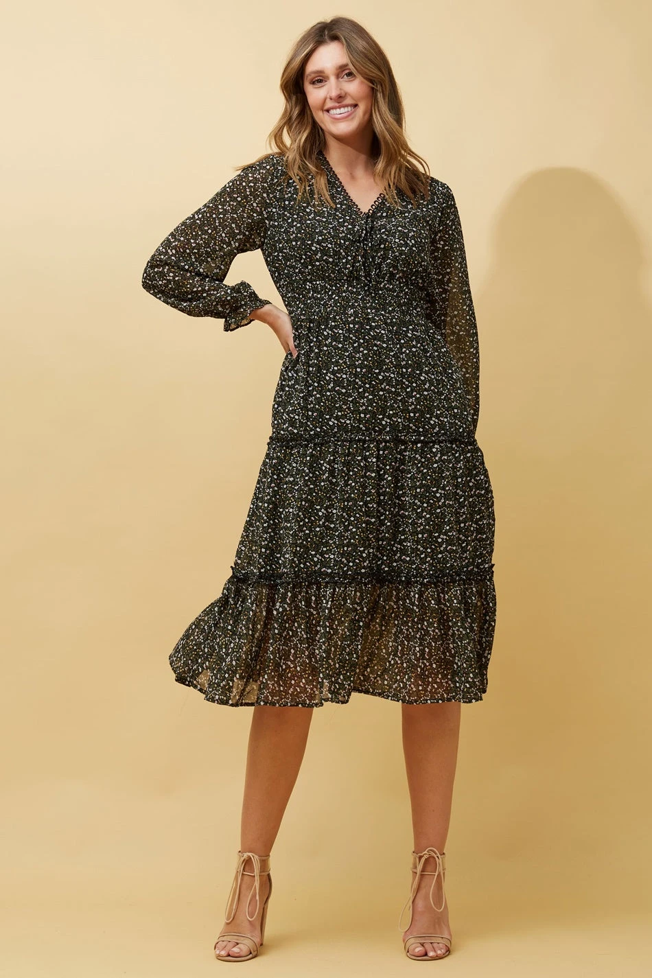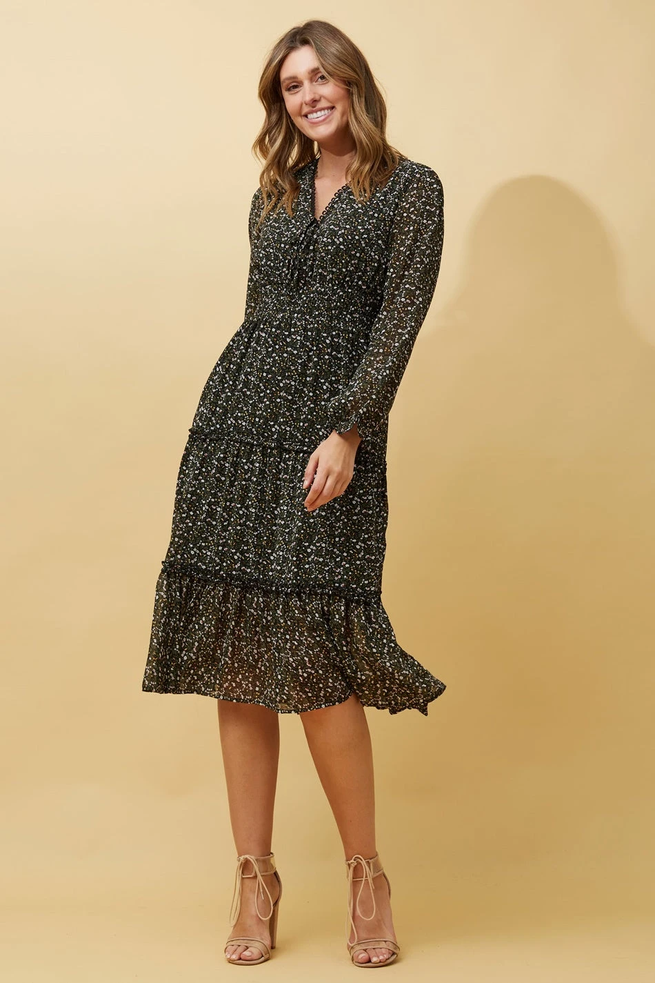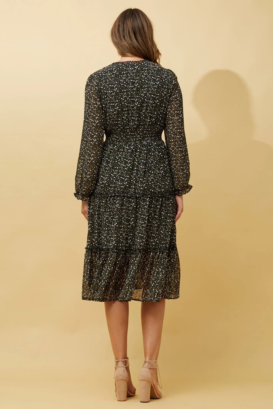With a stunning ditsy floral print, our Lori ditsy floral tiered midi dress is ideal for any informal occasion on your schedule. Dress this piece up with nude heels and minimal earrings for a sweet feminine look!