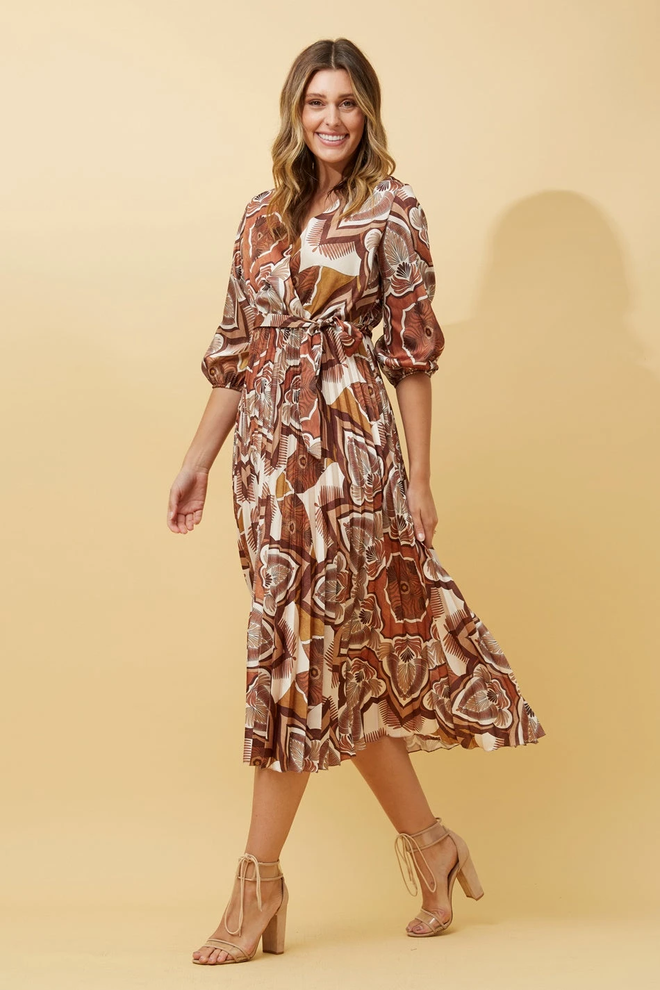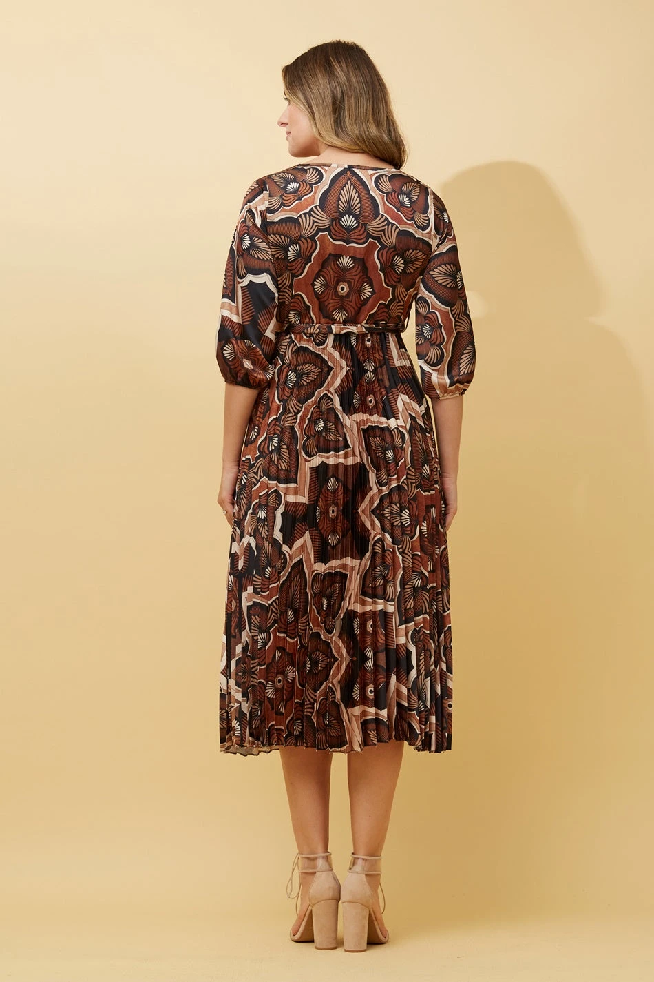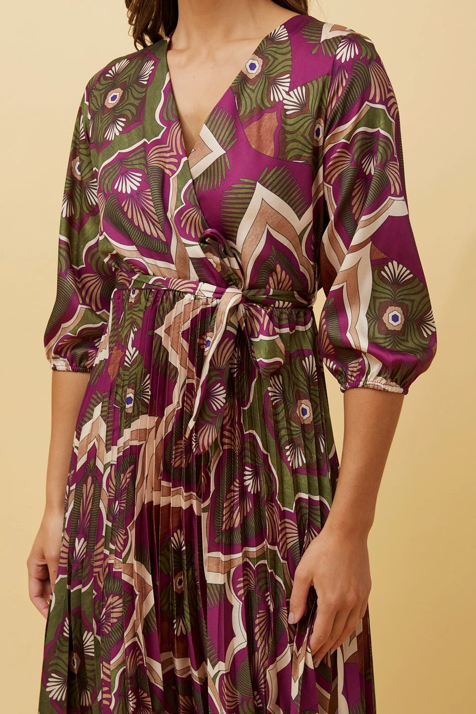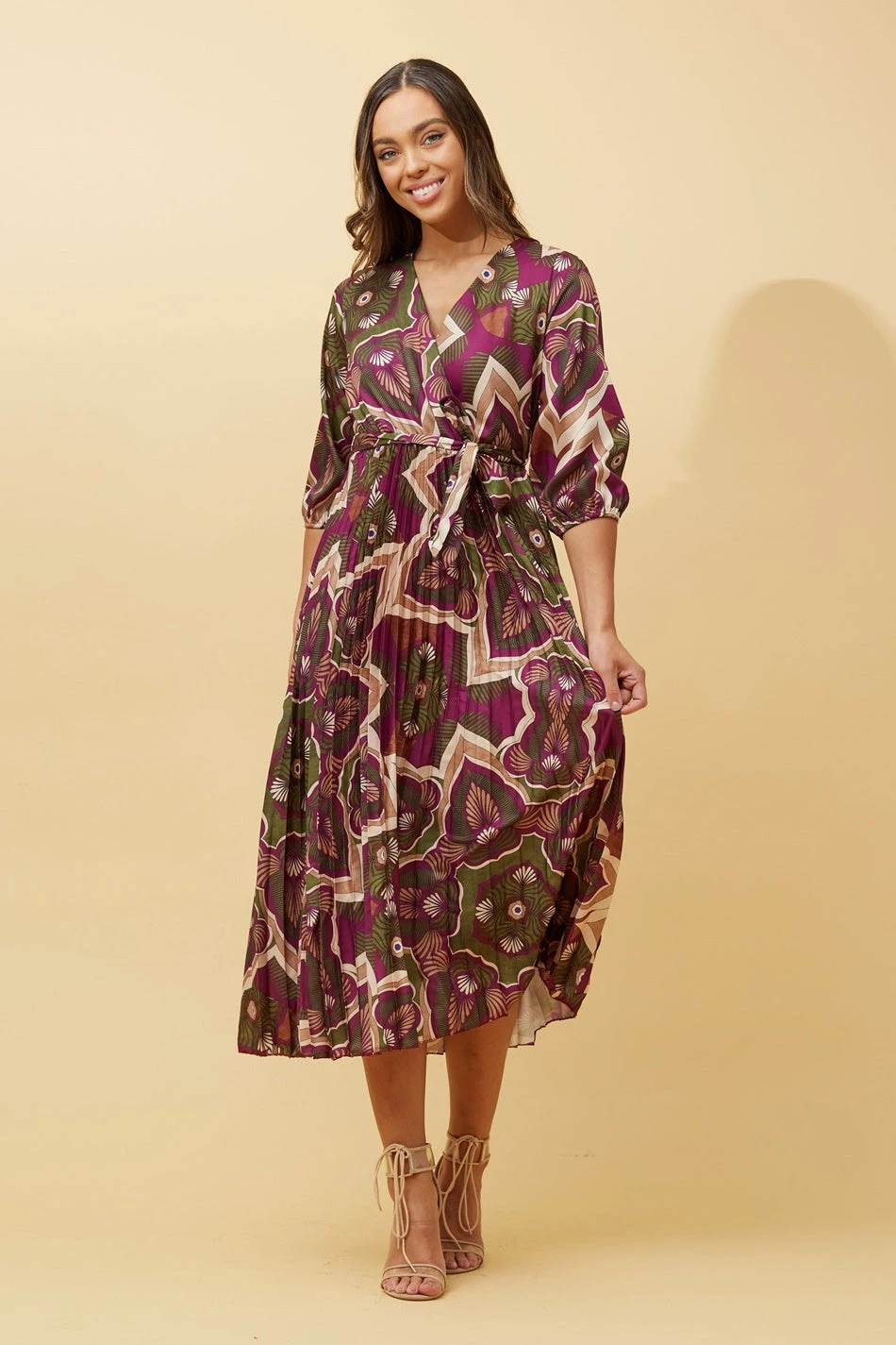 This gorgeous satin midi dress is perfect for all your special occasions. With soft fabric and shiny finish, this dress features a stunning pleated skirt and self fabric tie to embrace those beautiful curves. Wearing it with heels and earrings is sufficient to achieve that elegant look!