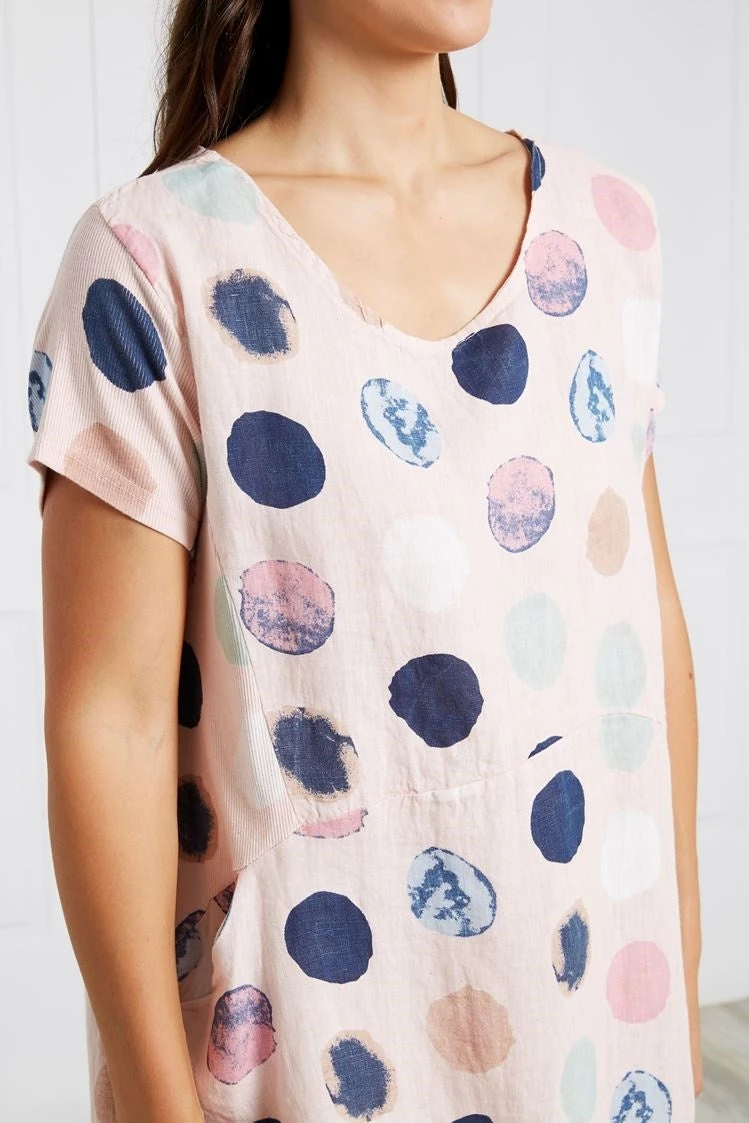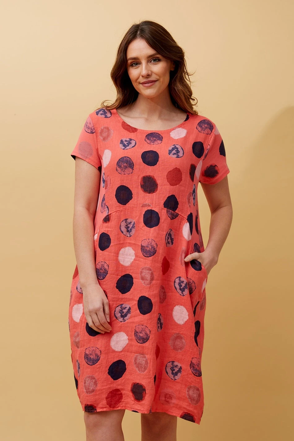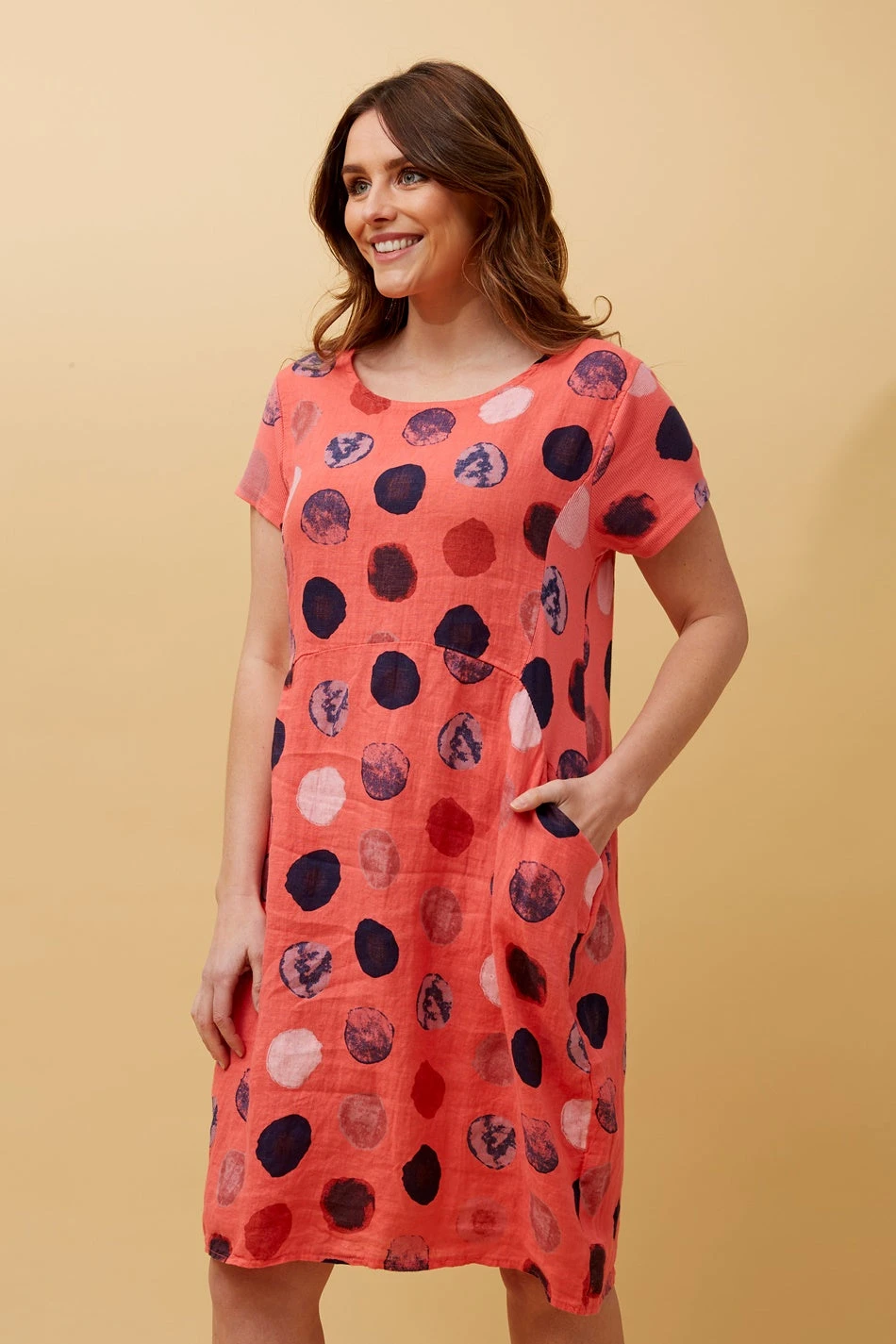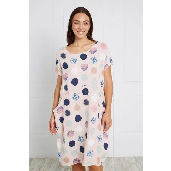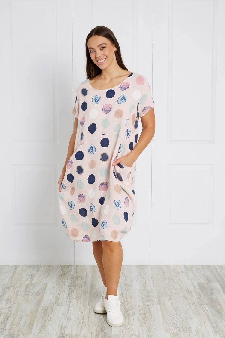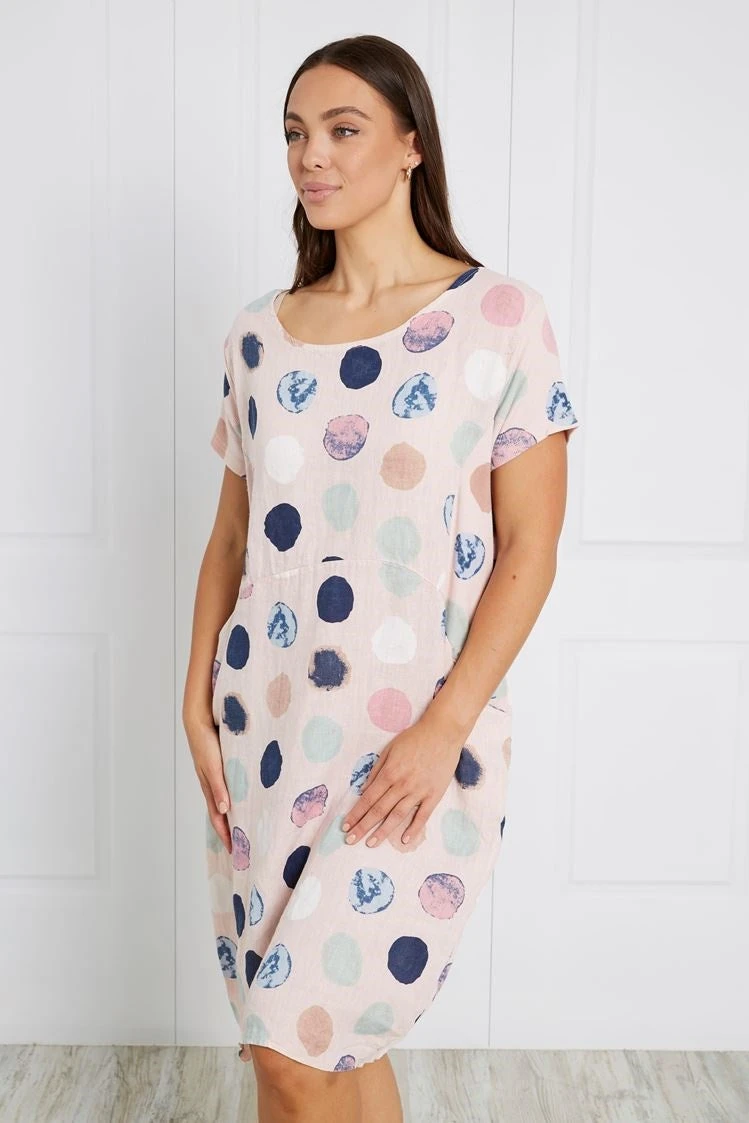 This delightful dress features a classic polka dot print that exudes playful sophistication. The short sleeves add a touch of casual elegance, making it perfect for everyday occasions.