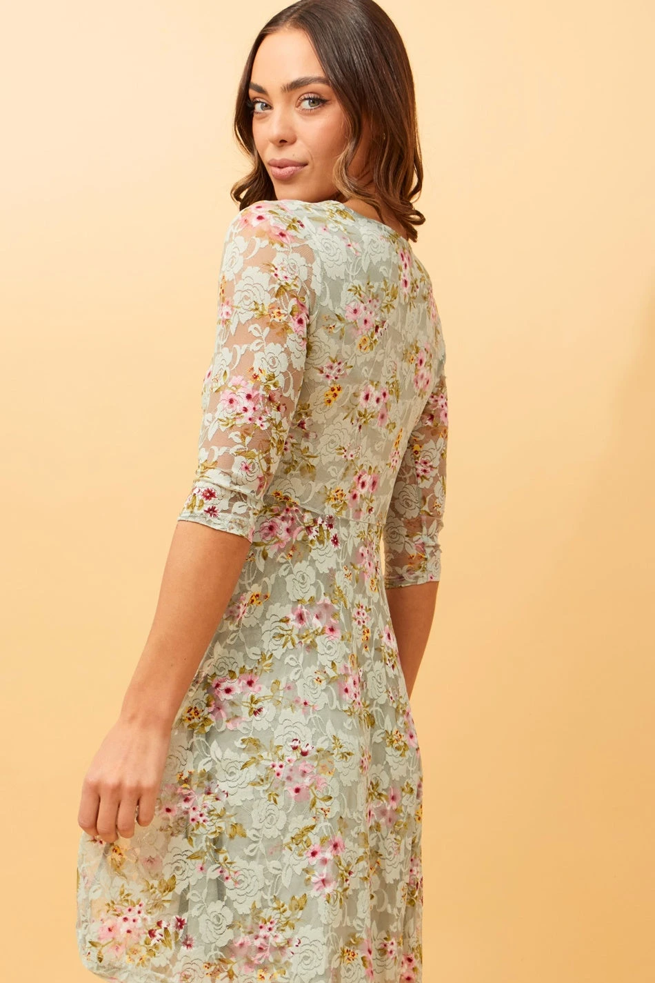 - 3/4th sheer sleeves
