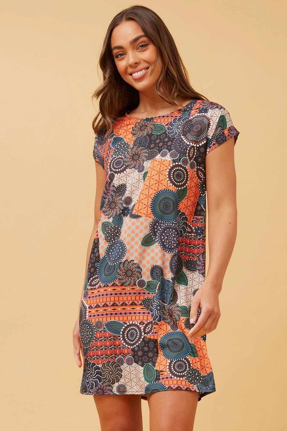 Go casual but look cute in our Paula boho print shift dress this season. It has a round neck and comes in a mini length. Wear with trainers in the day or dress it up with heels for a night out.