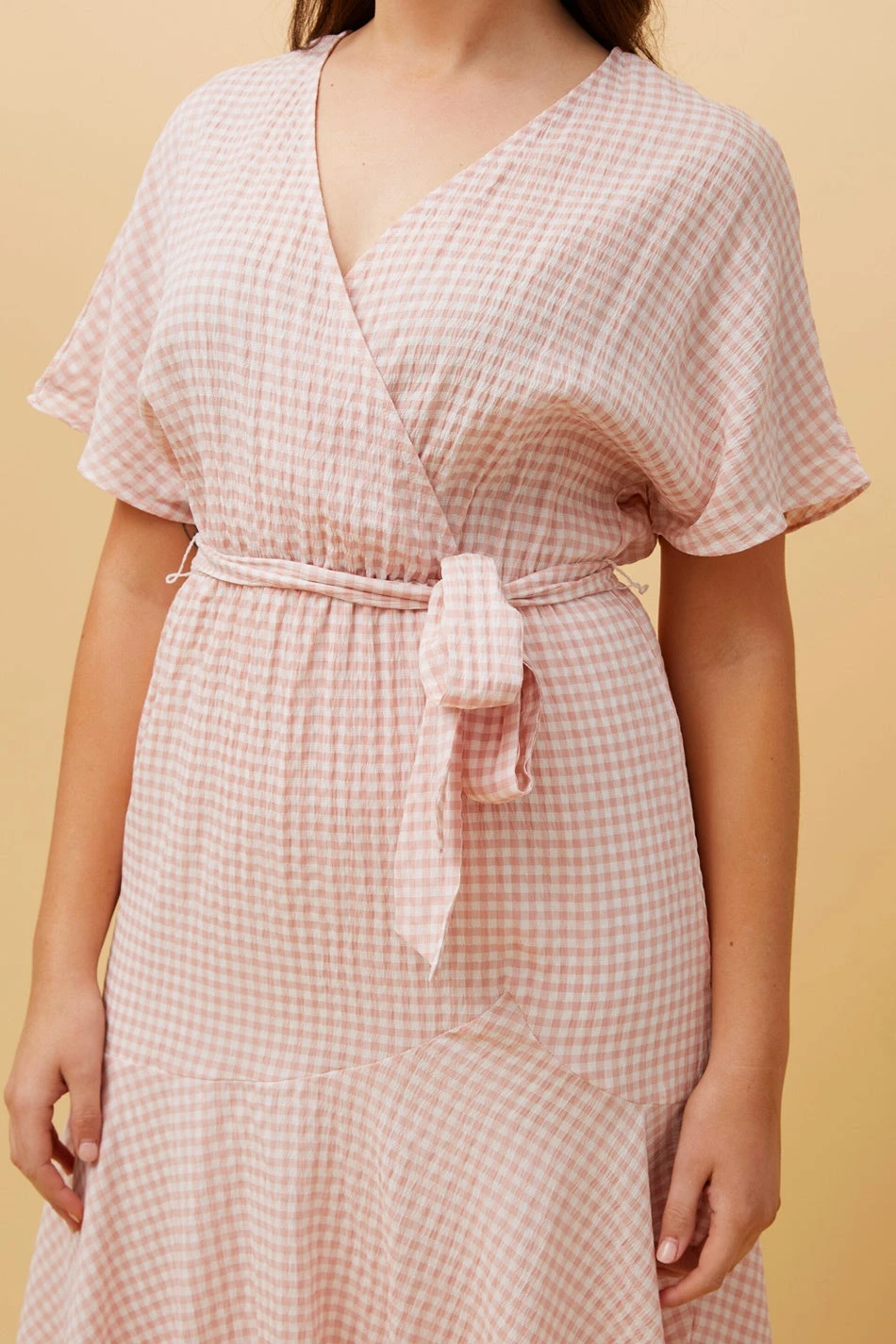 Add this gorgeous wrap dress to your wardrobe. Fabricated from a lightweight fabric with gingham check print. Team perfectly with strappy heels or ankle boots.