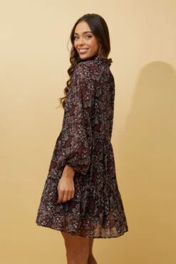 CALVIN BALLOON SLEEVE FLORAL SHORT DRESS