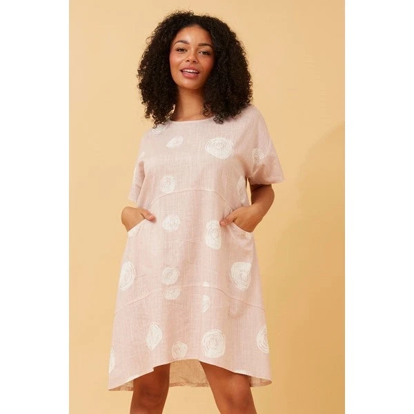 Go casual but look cute in this polka dot linen blend tunic dress this season. It has a round neck and comes in a relaxed fit. Wear with trainers in the day or dress it up with heels for a night out.