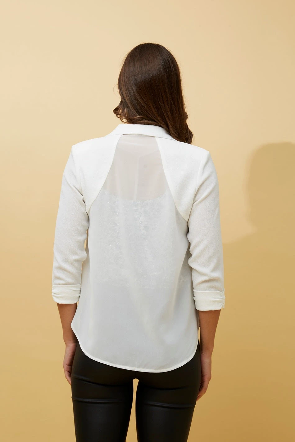 This beautiful delicate contrast panel jacket is a must have for anyone who likes to add a bit of glam to your everyday outfits. This jacket is an effortless upgrade to any outfit.