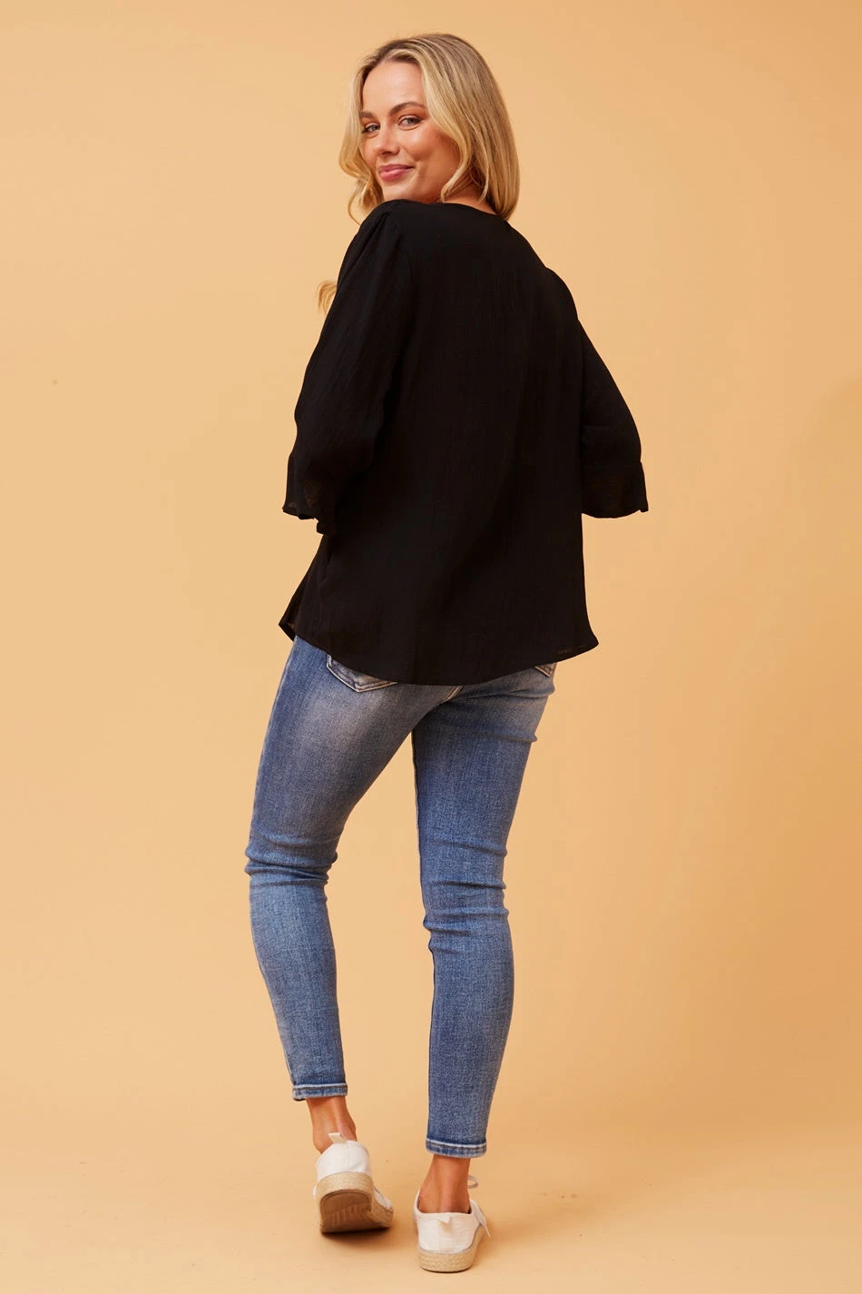 This button detail top is uncomplicated and easy to style with your skinnies this season! Wear it under a cozy puffer jacket and boots for some extra warmth or pair with denim and sneakers for a casual day outing.