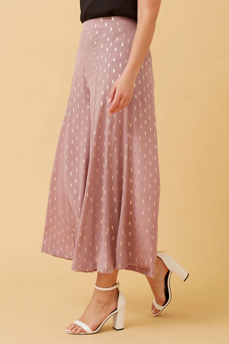 Make a style statement with these palazzo pants that feature foil print, zip and elasticated waist. Work It – Pair with a silk front silk kurta and heels to look hot.
