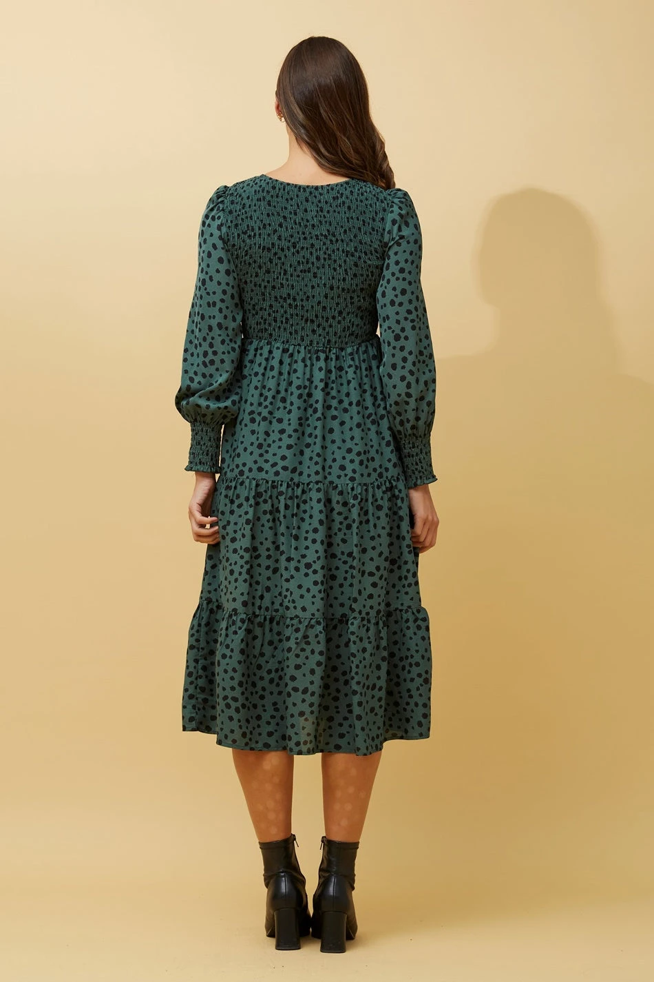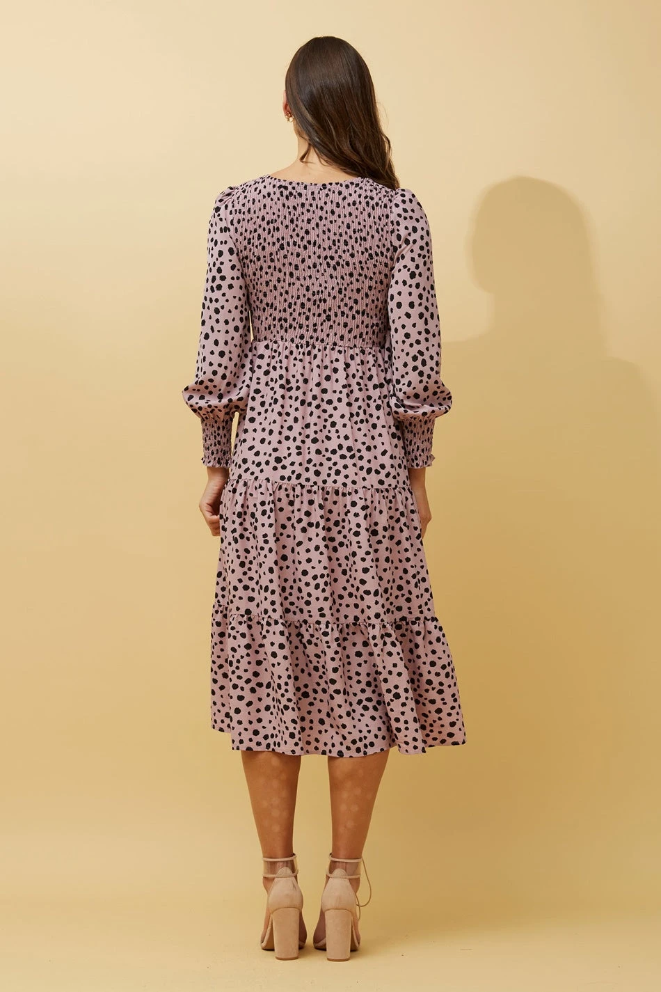 Transform your look from day to night in this stunning shirred dress. Pair it up with sneakers and a crossbody for a soccer mum vibe, alternatively, wear with heels or boots in the evening.