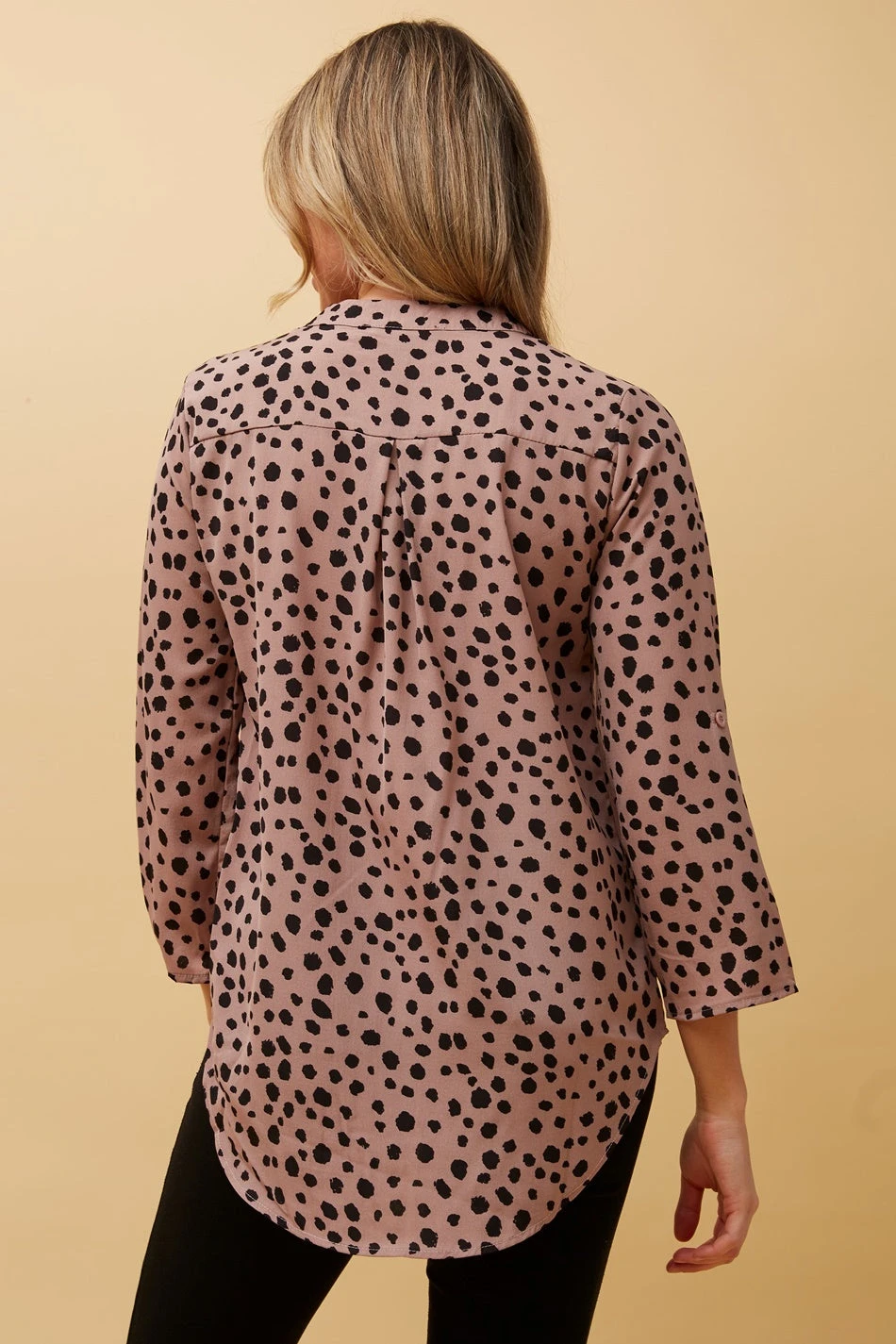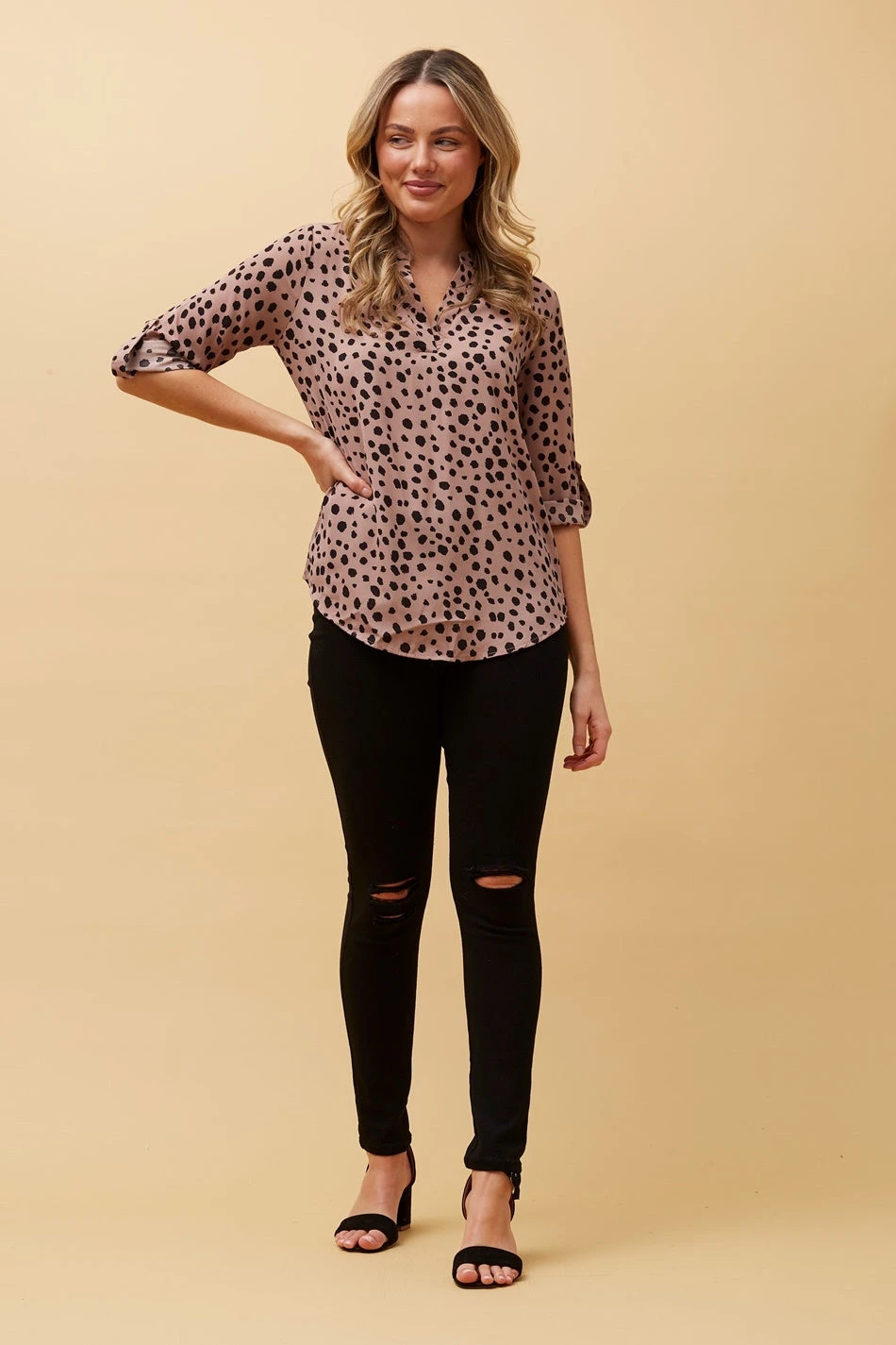 Add this elegant printed blouse to your wardrobe. Complete the look with high waisted jeans and heels for a casual daytime look.