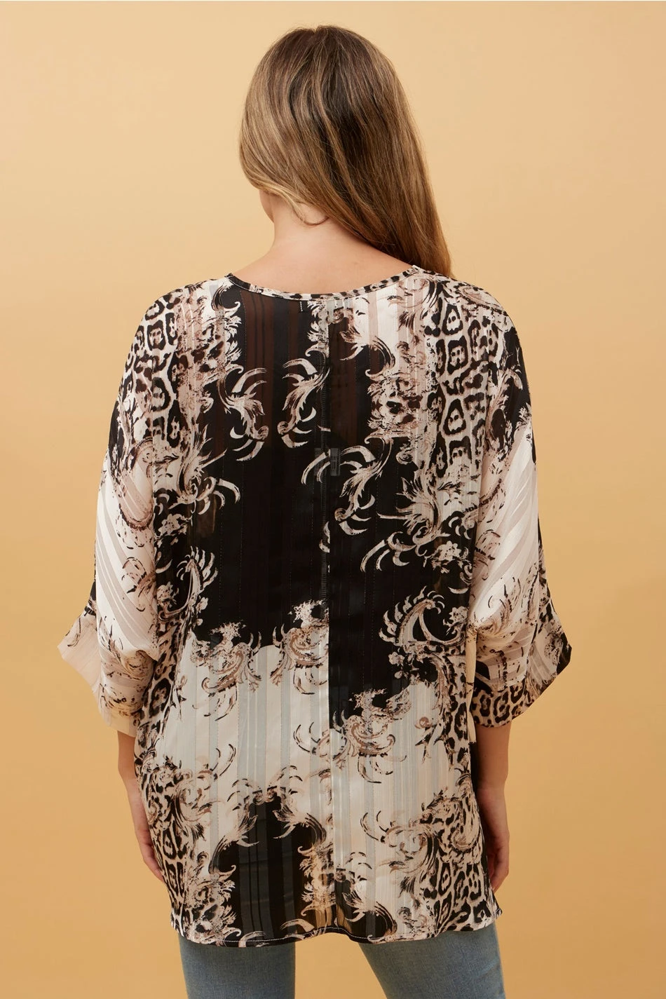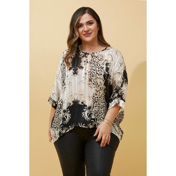 A unique print with ultimate comfort, our abby top is a perfect choice for those transeasonal days! Easy to pair with your skinny pants and sandals.
