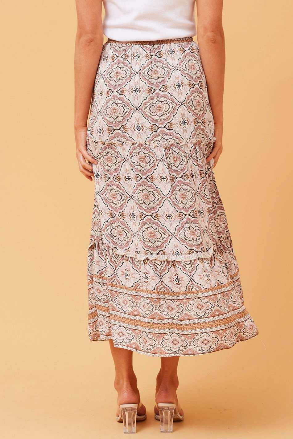 Infuse your style with the free-spirited charm of our Cody Floral Boho Maxi Skirt. Its tiered design creates a graceful flow, accentuating the boho border print that adorns the hemline. Whether strolling through the day or dancing under the moonlight, this maxi skirt is an ode to your unique style.