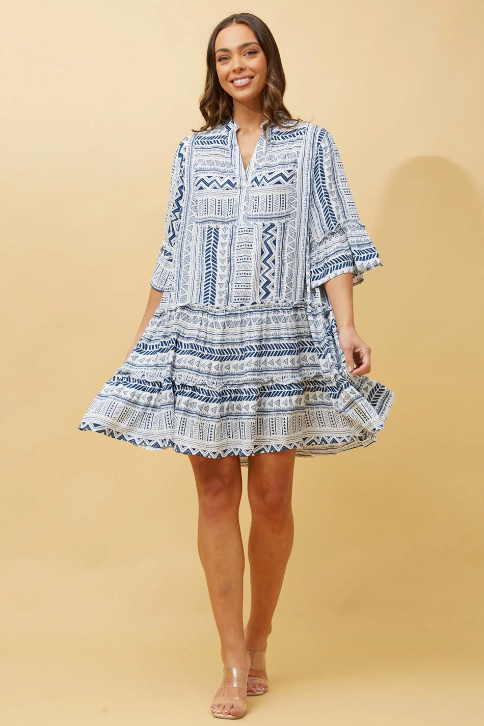 Make the aztec print short dress your new go-to staple piece. Accessorise and pair back with open toe heels to dial up your look!