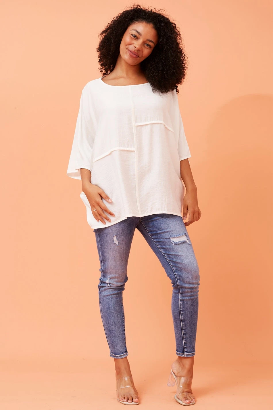A unique oversized design top for your wardrobe! Pair with your skinny pants and heels for casual vibes!